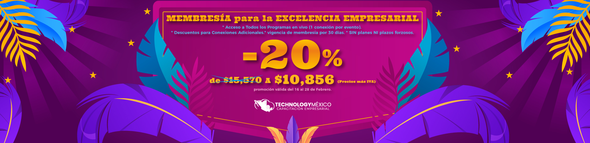 Obtendrá increíbles oportunidades, tales como: 1.- Acceso a todos los eventos programados del mes. (Una conexión) 2.- Descuentos para Conexiones Adicionales... 3.- Vigencia de membresía por 30 días... 4.- Promoción válida hasta el 28 de Febrero